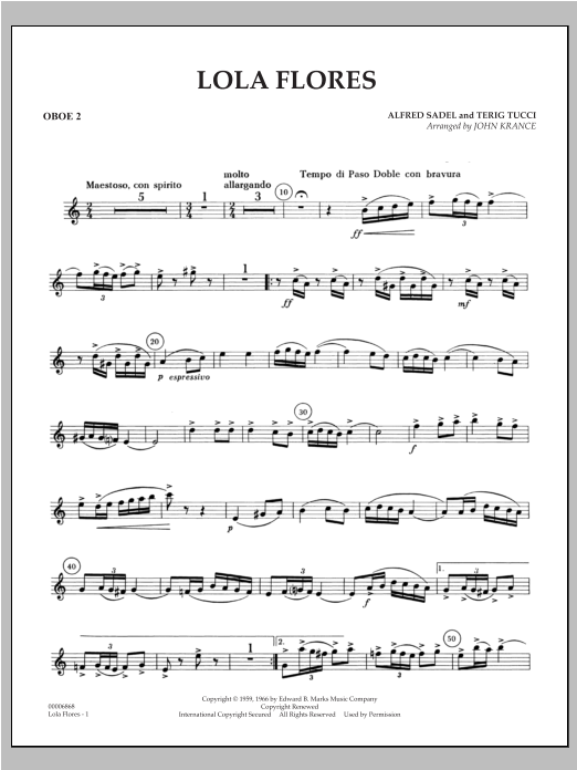 The lively dance style of the Paso Doble (double-step) is inherent in Spanish culture and claims its roots from the excitement and drama of the bullfight arena. Here in one of the most famous Paso Dobles can be heard the anticipation and pageantry as the matadors majestically enter the ring. John Krance's classic 1966 setting is a distinctive and important work for band. (Grade 4) Dur: 4:00 Recorded by the Texas A&M University Wind Symphony - Timothy Rhea, conductor From Mark Records Wind Band Masterworks Volume V 8515-MCD - Used with permission.