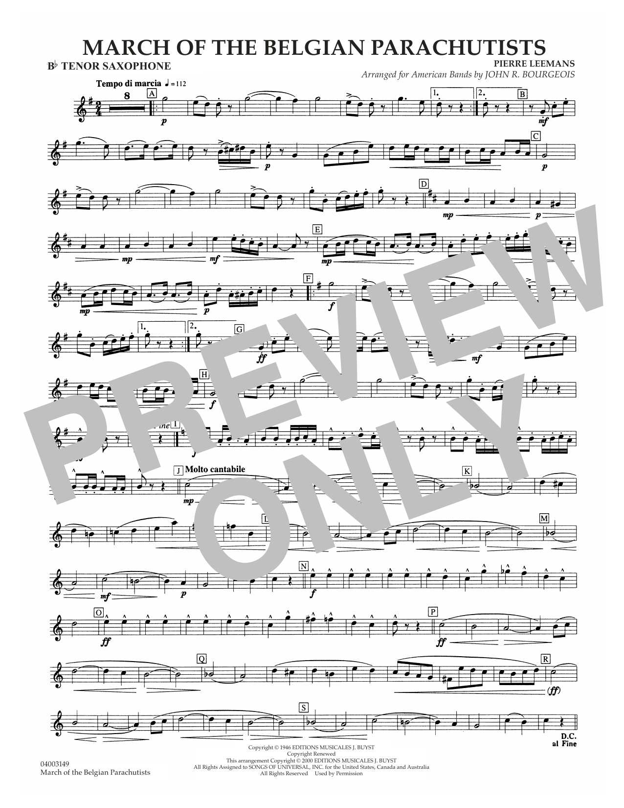 This immensely popular march, completed in Belgium near the end of World War II, is a lyrically upbeat European walking march. Newly researched by Col. John R. Bourgeois, former conductor of the U. S. Marine Band, this edition contains several strains omitted from a previous edition. Delightful! Dur: 4:15