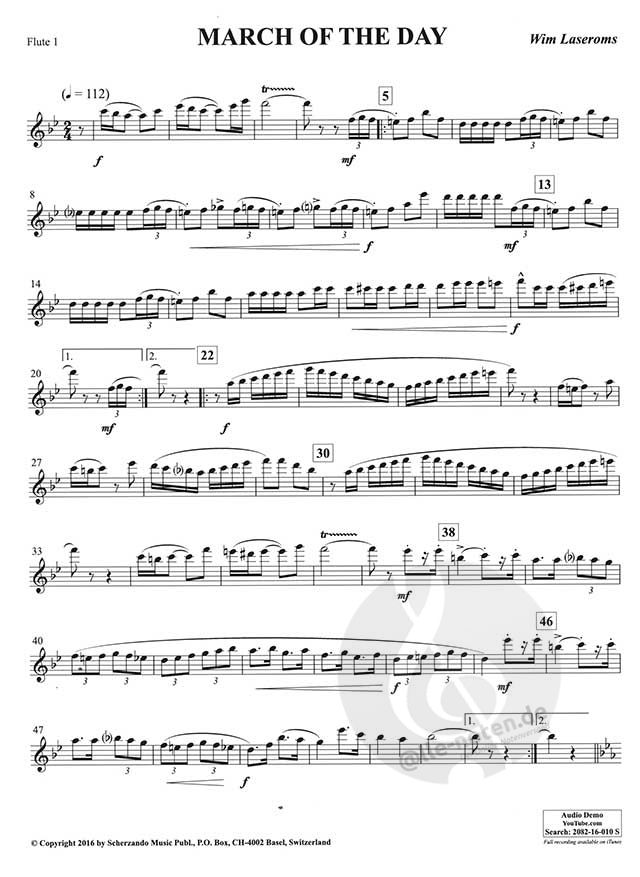 Dieses fröhliche und positive Werk beginnt mit einer ausruckvollen Einleitung, auf die ein verspieltes und leichtes Thema folgt. Der Mittelteil stellt die Bassinstrumente in den Vordergrund, darauf folgt ein wunderschönes Trio, das schließlich zum brillanten, festlichen Schluss führt. 'March of the Day' wird ein voller Erfolg sein, da es sich um einen traditionellen Marsch in einem strahlenden, modernen Gewand handelt.