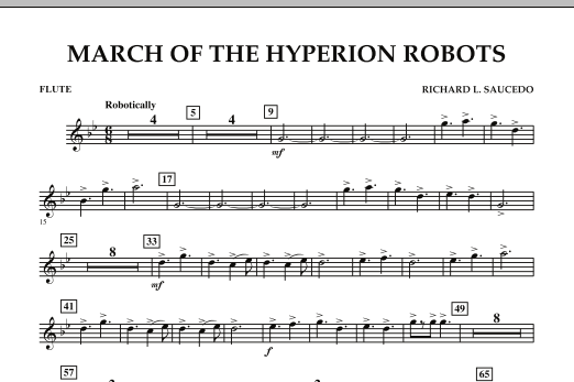 Hyperion, the mysterious moon of Saturn, boasts of a very musical race of robots! (Well, it makes for a fun story!) A perfect introduction to 6/8, this appealing and fresh-sounding work is written with easy-to-learn patterns, a single moderate tempo, and careful yet creative scoring for beginners. Dur: 2:10