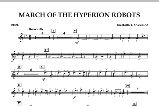 Hyperion, the mysterious moon of Saturn, boasts of a very musical race of robots! (Well, it makes for a fun story!) A perfect introduction to 6/8, this appealing and fresh-sounding work is written with easy-to-learn patterns, a single moderate tempo, and careful yet creative scoring for beginners. Dur: 2:10