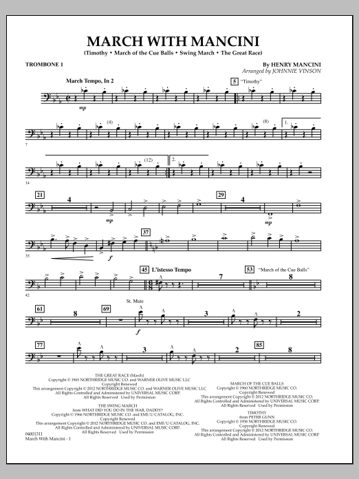 Der spielerische, einnehmende und melodische Stil des Meisterkomponisten Henry Mancini wird nirgendwo deutlicher als in den Märschen, die er für die Leinwand komponierte. Hier ist ein funkelndes Marsch-Medley, das Timothy, March of the Cue Balls, Swing March und The Great Race enthält.