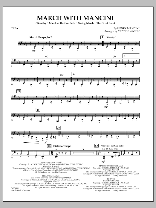 Der spielerische, einnehmende und melodische Stil des Meisterkomponisten Henry Mancini wird nirgendwo deutlicher als in den Märschen, die er für die Leinwand komponierte. Hier ist ein funkelndes Marsch-Medley, das Timothy, March of the Cue Balls, Swing March und The Great Race enthält.