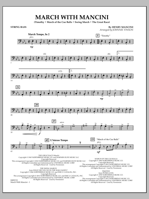 Der spielerische, einnehmende und melodische Stil des Meisterkomponisten Henry Mancini wird nirgendwo deutlicher als in den Märschen, die er für die Leinwand komponierte. Hier ist ein funkelndes Marsch-Medley, das Timothy, March of the Cue Balls, Swing March und The Great Race enthält.