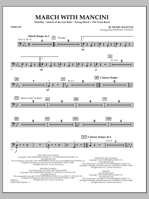Der spielerische, einnehmende und melodische Stil des Meisterkomponisten Henry Mancini wird nirgendwo deutlicher als in den Märschen, die er für die Leinwand komponierte. Hier ist ein funkelndes Marsch-Medley, das Timothy, March of the Cue Balls, Swing March und The Great Race enthält.