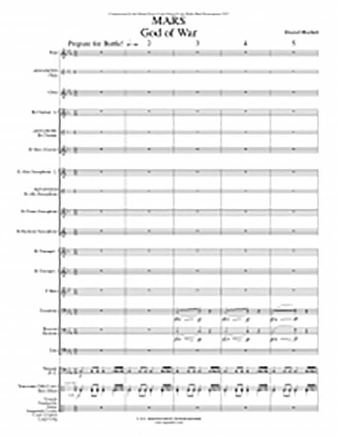 Prepare for battle! Mars, the Roman god of war, is one of the most significant characters in Roman mythology. Not only is he a warrior, but he is the father of the Roman people. The many statues found in Italy show him as a noble, strong, and majestic man with a spear and helmet. In this piece these characteristics are set to music with beating war drums, strong themes, and powerful unison parts. (3:30)
