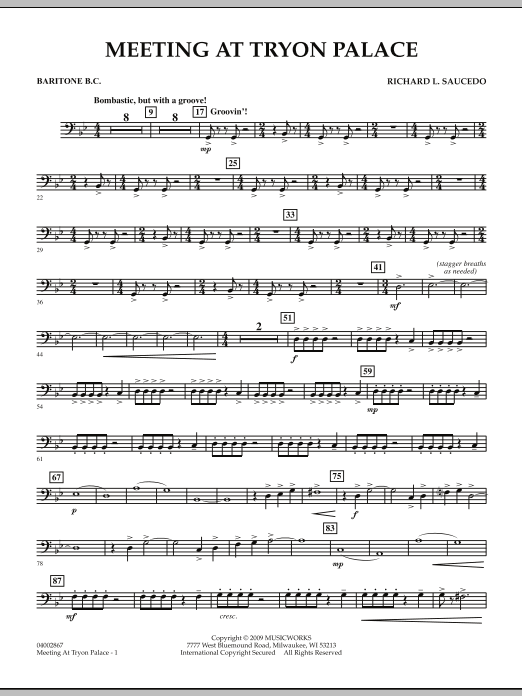Described by the composer as bombastic, but with a groove this work for young players opens with striking percussion statements. The band enters gradually, first with unison figures along with the percussion, and then additional layers. A contrasting slow section with flowing lines and minor harmonies sets the stage for the dramatic final section. A great way to showcase your percussion section. Dur: 4:10 (Grade 2)