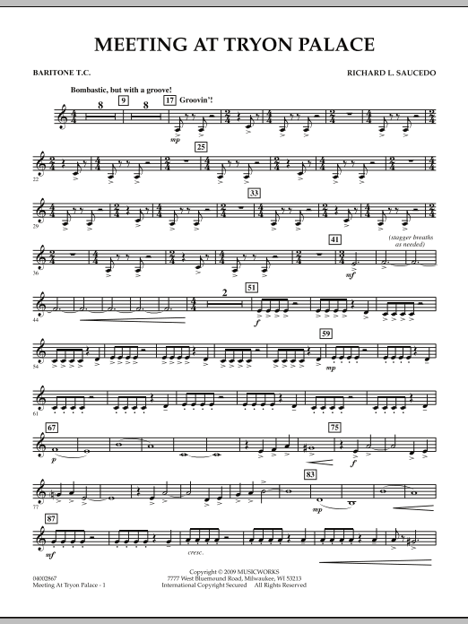Described by the composer as bombastic, but with a groove this work for young players opens with striking percussion statements. The band enters gradually, first with unison figures along with the percussion, and then additional layers. A contrasting slow section with flowing lines and minor harmonies sets the stage for the dramatic final section. A great way to showcase your percussion section. Dur: 4:10 (Grade 2)