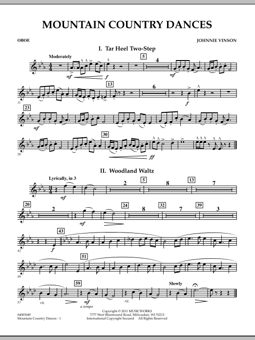 Inspiriert von der musikalischen Tradition früher amerikanischer Volkslieder hat Johnnie Vinson diese ansprechende Suite mit drei kontrastierenden Tanzstilen komponiert. Zu den Sätzen gehören Tar Heel Two-Step, Woodland Waltz und Blue Ridge Reel. Sicherlich ein unterhaltsames und lohnendes Werk für junge Bands. (Grad 2.5) Dauer: 5:15