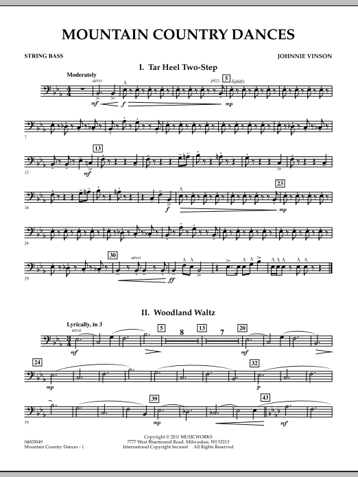 Inspiriert von der musikalischen Tradition früher amerikanischer Volkslieder hat Johnnie Vinson diese ansprechende Suite mit drei kontrastierenden Tanzstilen komponiert. Zu den Sätzen gehören Tar Heel Two-Step, Woodland Waltz und Blue Ridge Reel. Sicherlich ein unterhaltsames und lohnendes Werk für junge Bands. (Grad 2.5) Dauer: 5:15