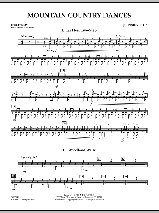 Inspiriert von der musikalischen Tradition früher amerikanischer Volkslieder hat Johnnie Vinson diese ansprechende Suite mit drei kontrastierenden Tanzstilen komponiert. Zu den Sätzen gehören Tar Heel Two-Step, Woodland Waltz und Blue Ridge Reel. Sicherlich ein unterhaltsames und lohnendes Werk für junge Bands. (Grad 2.5) Dauer: 5:15