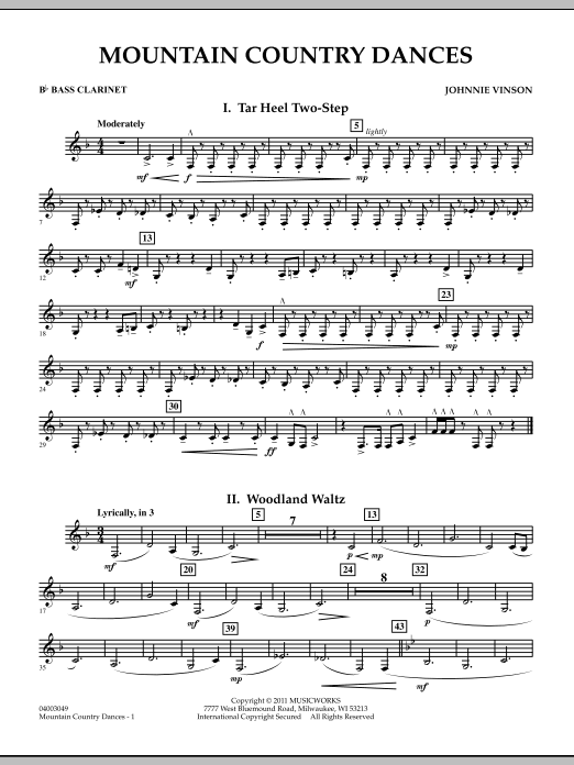 Inspiriert von der musikalischen Tradition früher amerikanischer Volkslieder hat Johnnie Vinson diese ansprechende Suite mit drei kontrastierenden Tanzstilen komponiert. Zu den Sätzen gehören Tar Heel Two-Step, Woodland Waltz und Blue Ridge Reel. Sicherlich ein unterhaltsames und lohnendes Werk für junge Bands. (Grad 2.5) Dauer: 5:15