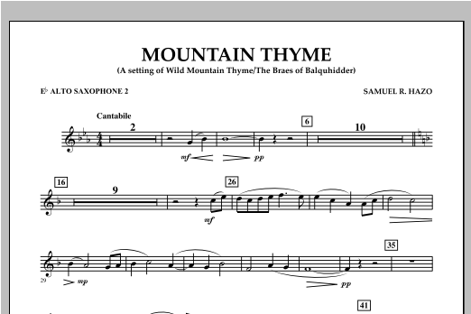 Written as a memorial, this beautifully emotional setting is a reworking of the traditional folk song The Braes of Baquhidder (also known as Wild Mountain Thyme) by Scottish writer Robert Tannahill. Samuel Hazo uses a varied tapestry of colors, textures and dynamics, taking full advantage of the depth and power of the modern wind band in creating this stunningly effective work. Dur: 4:20