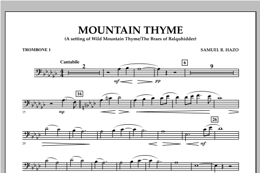 Written as a memorial, this beautifully emotional setting is a reworking of the traditional folk song The Braes of Baquhidder (also known as Wild Mountain Thyme) by Scottish writer Robert Tannahill. Samuel Hazo uses a varied tapestry of colors, textures and dynamics, taking full advantage of the depth and power of the modern wind band in creating this stunningly effective work. Dur: 4:20