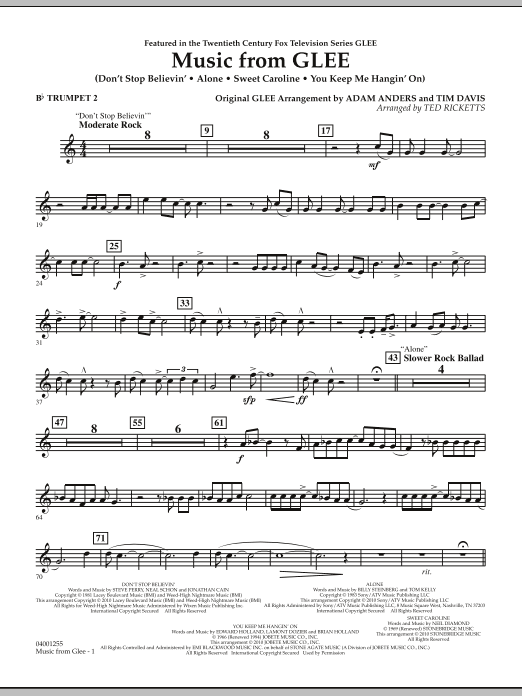 There seems to be no stopping the popularity of the hit TV series Glee! With fresh versions of some of the biggest hits from past decades, here is a terrific medley of showstoppers featured on the first season. Includes: Don't Stop Believin', Alone, You Keep Me Hangin' On and Sweet Caroline.