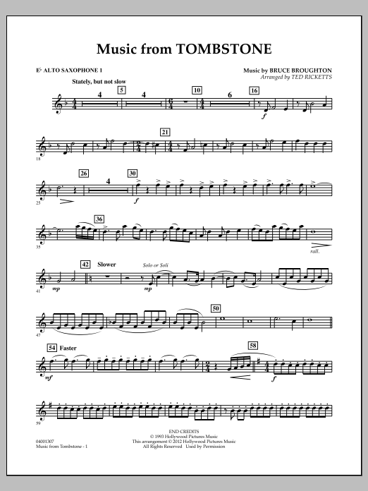The 1993 western film Tombstone tells the tale of the legendary gunfight at the O. K. Corral. While the movie itself met with limited success, the powerful soundtrack by Bruce Broughton has become a classic. This adaptation for band features the primary themes in a bold and impressive concert setting.