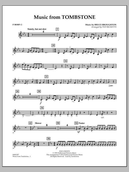 The 1993 western film Tombstone tells the tale of the legendary gunfight at the O. K. Corral. While the movie itself met with limited success, the powerful soundtrack by Bruce Broughton has become a classic. This adaptation for band features the primary themes in a bold and impressive concert setting.