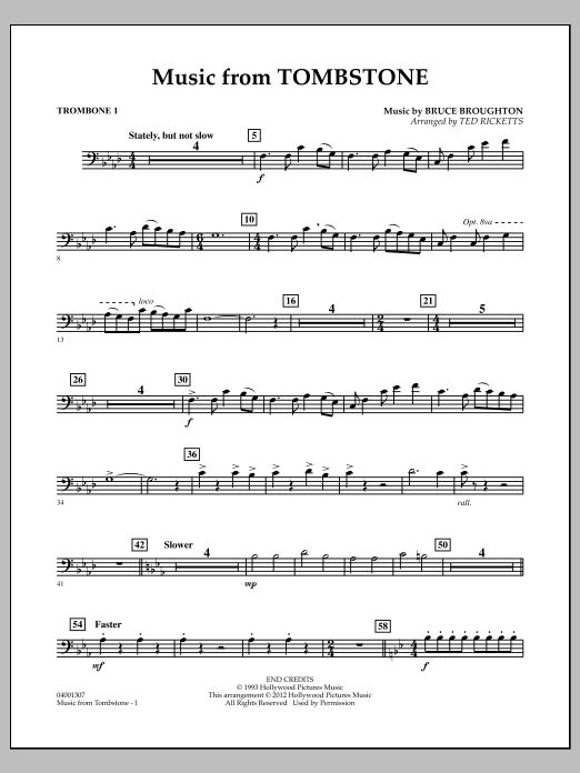 The 1993 western film Tombstone tells the tale of the legendary gunfight at the O. K. Corral. While the movie itself met with limited success, the powerful soundtrack by Bruce Broughton has become a classic. This adaptation for band features the primary themes in a bold and impressive concert setting.