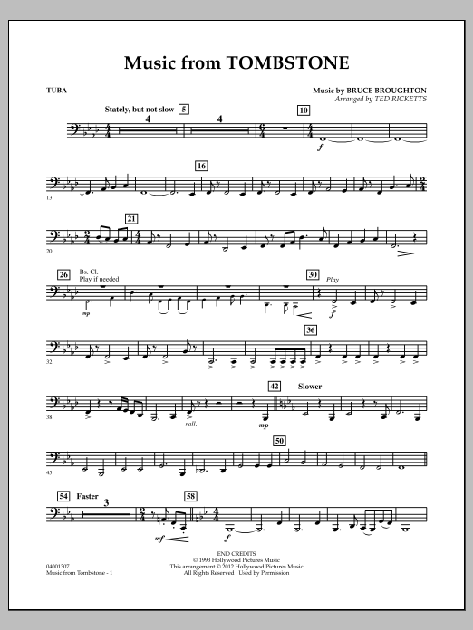 The 1993 western film Tombstone tells the tale of the legendary gunfight at the O. K. Corral. While the movie itself met with limited success, the powerful soundtrack by Bruce Broughton has become a classic. This adaptation for band features the primary themes in a bold and impressive concert setting.