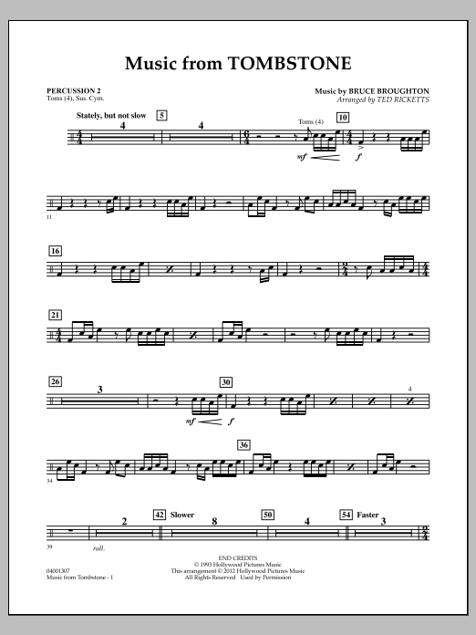 The 1993 western film Tombstone tells the tale of the legendary gunfight at the O. K. Corral. While the movie itself met with limited success, the powerful soundtrack by Bruce Broughton has become a classic. This adaptation for band features the primary themes in a bold and impressive concert setting.