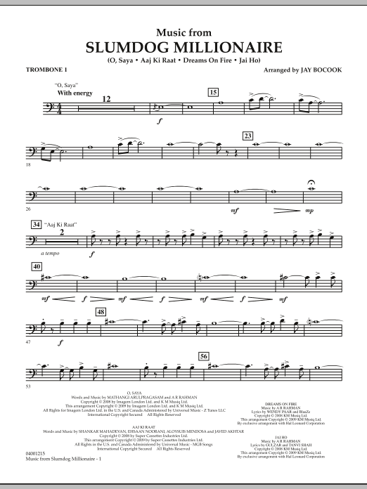 Winner of the 2009 Academy Award for Best Picture, Best Original Score, and numerous other awards, this movie took the country by storm. The driving soundtrack of A. R. Rahman played a major part in bringing this powerful and uplifting story to the silver screen. A terrific setting for band that includes the hit song 'Jai Ho!' Dur: 4:45