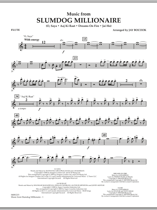 Winner of the 2009 Academy Award for Best Picture, Best Original Score, and numerous other awards, this movie took the country by storm. The driving soundtrack of A. R. Rahman played a major part in bringing this powerful and uplifting story to the silver screen. A terrific setting for band that includes the hit song 'Jai Ho!' Dur: 4:45