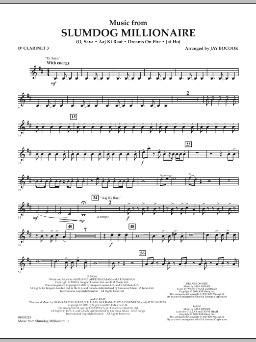 Winner of the 2009 Academy Award for Best Picture, Best Original Score, and numerous other awards, this movie took the country by storm. The driving soundtrack of A. R. Rahman played a major part in bringing this powerful and uplifting story to the silver screen. A terrific setting for band that includes the hit song 'Jai Ho!' Dur: 4:45