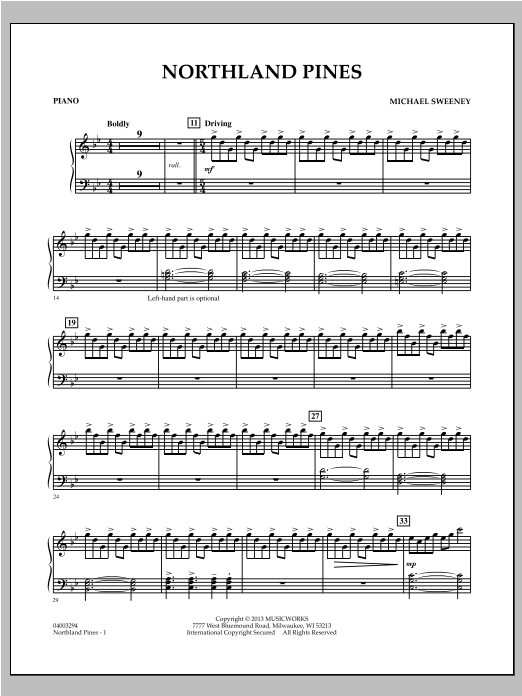 Bringing to mind the scenic majesty of the northern forests, Michael's fresh-sounding overture for young players opens with a powerful fanfare before introducing the energetic main theme in 5/4. Carefully using repetitive patterns combined with a unique harmonic treatment and brief lyric section, this work provides musical depth in a framework that is easy to teach. (Grade 2.5) Dur: 4:00