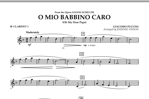 From the Puccini opera Gianni Schicchi, this is one of the most beautiful and recognizable melodies in all of classical music. Providing a marvelous opportunity for lyric style playing, Johnnie Vinson's authentic-sounding adaptation for young players will be enjoyed at concerts and festivals alike.