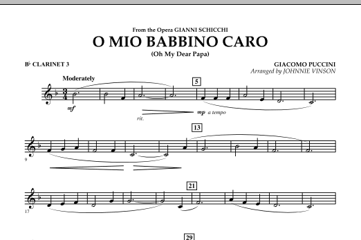 From the Puccini opera Gianni Schicchi, this is one of the most beautiful and recognizable melodies in all of classical music. Providing a marvelous opportunity for lyric style playing, Johnnie Vinson's authentic-sounding adaptation for young players will be enjoyed at concerts and festivals alike.
