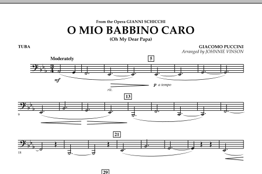 From the Puccini opera Gianni Schicchi, this is one of the most beautiful and recognizable melodies in all of classical music. Providing a marvelous opportunity for lyric style playing, Johnnie Vinson's authentic-sounding adaptation for young players will be enjoyed at concerts and festivals alike.