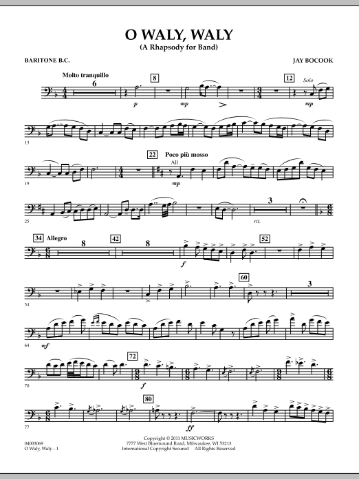 Dating from the 1600s, the folk song O Waly, Waly (commonly known as The Water is Wide) forms the basis for this well-crafted rhapsody for band. The lyrical opening section features solos on flute and euphonium, as a four-note motif common to this song and also Carolina (South Caroline's official song) is developed. This motif unifies the entire work. A Celtic flavored Allegro takes over using this fragment, which leads ultimately to a grand Maestoso section for the entire ensemble. A creative and dynamic work for contest or festival! Dur: 5:00