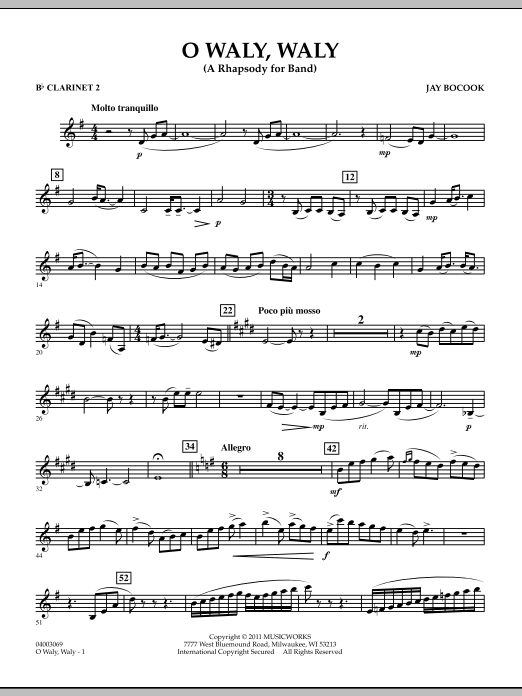 Dating from the 1600s, the folk song O Waly, Waly (commonly known as The Water is Wide) forms the basis for this well-crafted rhapsody for band. The lyrical opening section features solos on flute and euphonium, as a four-note motif common to this song and also Carolina (South Caroline's official song) is developed. This motif unifies the entire work. A Celtic flavored Allegro takes over using this fragment, which leads ultimately to a grand Maestoso section for the entire ensemble. A creative and dynamic work for contest or festival! Dur: 5:00