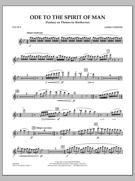 A powerful work for the symphonic band, Ode to the Spirit of Man is based on thematic material taken from the fourth movement of Beethoven's Symphony No. 9 and developed into a fantasy of kaleidoscopic nature. The opening is a joyful expression of the spirit of freedom and is based on the composer's own themes derived from Beethoven's music. Throughout the work, various themes from the symphony are interwoven, including Alla Marcia, Scherzo, Andante maestoso and finally the uplifting Ode to Joy. Dur: 5:15