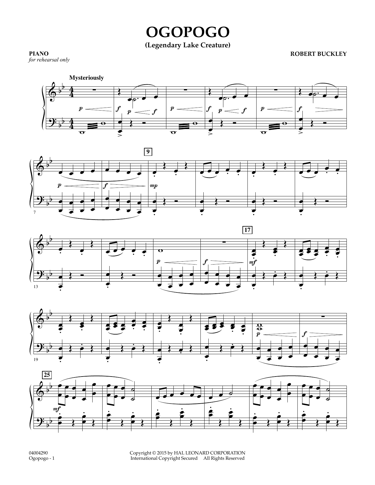 Basierend auf der legendären Seekreatur, die im Okanagan-See in Kanada lebt, erweckt Ogopogo das Ungeheuer mit eigenwilliger Orchestrierung und Rhythmen zum Leben. Die riesige Kreatur erhebt sich aus der Tiefe, spielt in den Wellen und verschwindet dann plötzlich wieder in der Dunkelheit. Ideal für eine einzigartige Abwechslung, verwendet Ogopogo die ersten 6 Noten der B-Tonleiter und ist im phrygischen Modus geschrieben.