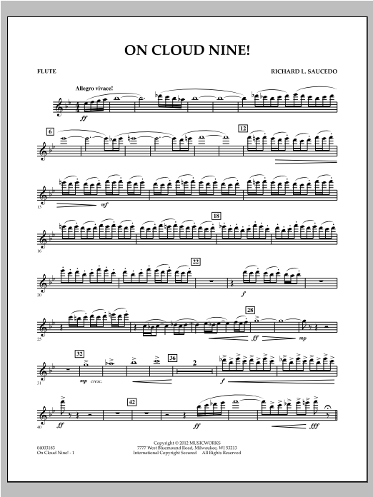 On Cloud Nine is an impressive and energetic composition that will fit in just about any part of your concert program. The flashy opening segment features woodwind flourishes with powerful brass interjections. Following a slow and beautiful lyric setting of the theme featuring solos on horn and flute, the fast tempo returns and powers the piece to an exciting climax. With accessible ranges and modest technical demands, this work sounds harder than it really is. Dur. 3:00