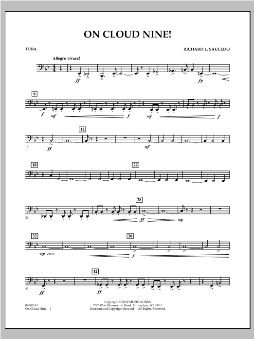 On Cloud Nine is an impressive and energetic composition that will fit in just about any part of your concert program. The flashy opening segment features woodwind flourishes with powerful brass interjections. Following a slow and beautiful lyric setting of the theme featuring solos on horn and flute, the fast tempo returns and powers the piece to an exciting climax. With accessible ranges and modest technical demands, this work sounds harder than it really is. Dur. 3:00