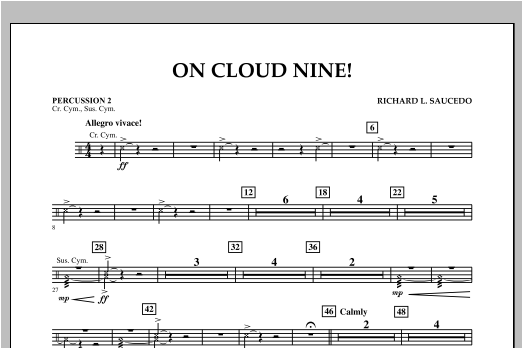 On Cloud Nine is an impressive and energetic composition that will fit in just about any part of your concert program. The flashy opening segment features woodwind flourishes with powerful brass interjections. Following a slow and beautiful lyric setting of the theme featuring solos on horn and flute, the fast tempo returns and powers the piece to an exciting climax. With accessible ranges and modest technical demands, this work sounds harder than it really is. Dur. 3:00