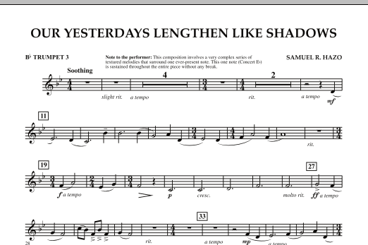 This uniquely constructed work was commissioned by the 2008 South Carolina High School All-State Band and consists of a series of gorgeous melodic textures surrounding one ever-present note. The listener hears this note briefly in the beginning and the end, but it is skillfully hidden in between. From lush soft passages to crescendos that leave your audience breathless, this composition will provide you and your ensemble with an unforgettable musical experience! Dur: 5:00
