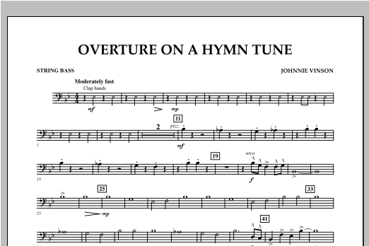 Overture on a Hymn Tune is based on 'The Old Ship Of Zion' which is found in the Early American Sacred Harp songbook. Johnnie Vinson uses a fast-slow-fast overture format to give this wonderful melody an appealing setting with plenty of variety and musicality. The slow middle section is a rhapsodic treatment of the main melody, while the two fast segments offer appealing and upbeat settings sure to be enjoyed by all. Skillfully scored to sound full with inexperienced players. Dur: 3:30