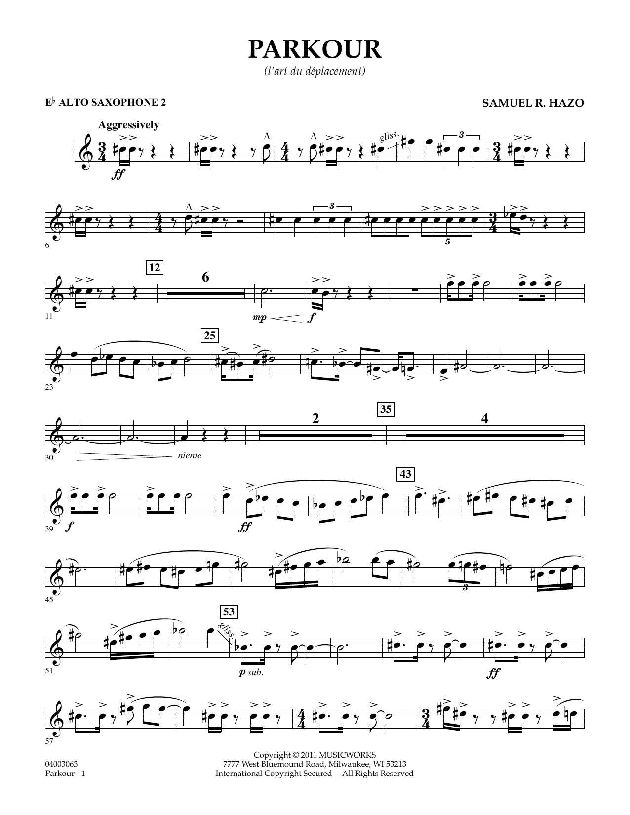 Combining brash and aggressive rhythmic figures along with more gentle moments and inventive textures, this impressive work by Samuel Hazo is truly a standout for advanced bands. The piece is built around a four-note motif, which is developed and expanded throughout. A middle section features more of a jazzy flavor with saxes in the spotlight accompanied by finger snaps. The rhythmic intensity returns, building towards a glorious full ensemble affirmation and bringing this exciting work to a powerful conclusion.