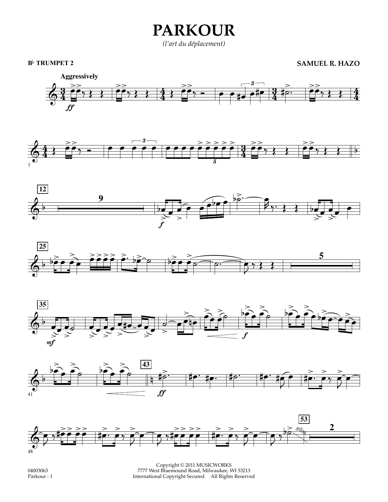 Combining brash and aggressive rhythmic figures along with more gentle moments and inventive textures, this impressive work by Samuel Hazo is truly a standout for advanced bands. The piece is built around a four-note motif, which is developed and expanded throughout. A middle section features more of a jazzy flavor with saxes in the spotlight accompanied by finger snaps. The rhythmic intensity returns, building towards a glorious full ensemble affirmation and bringing this exciting work to a powerful conclusion.