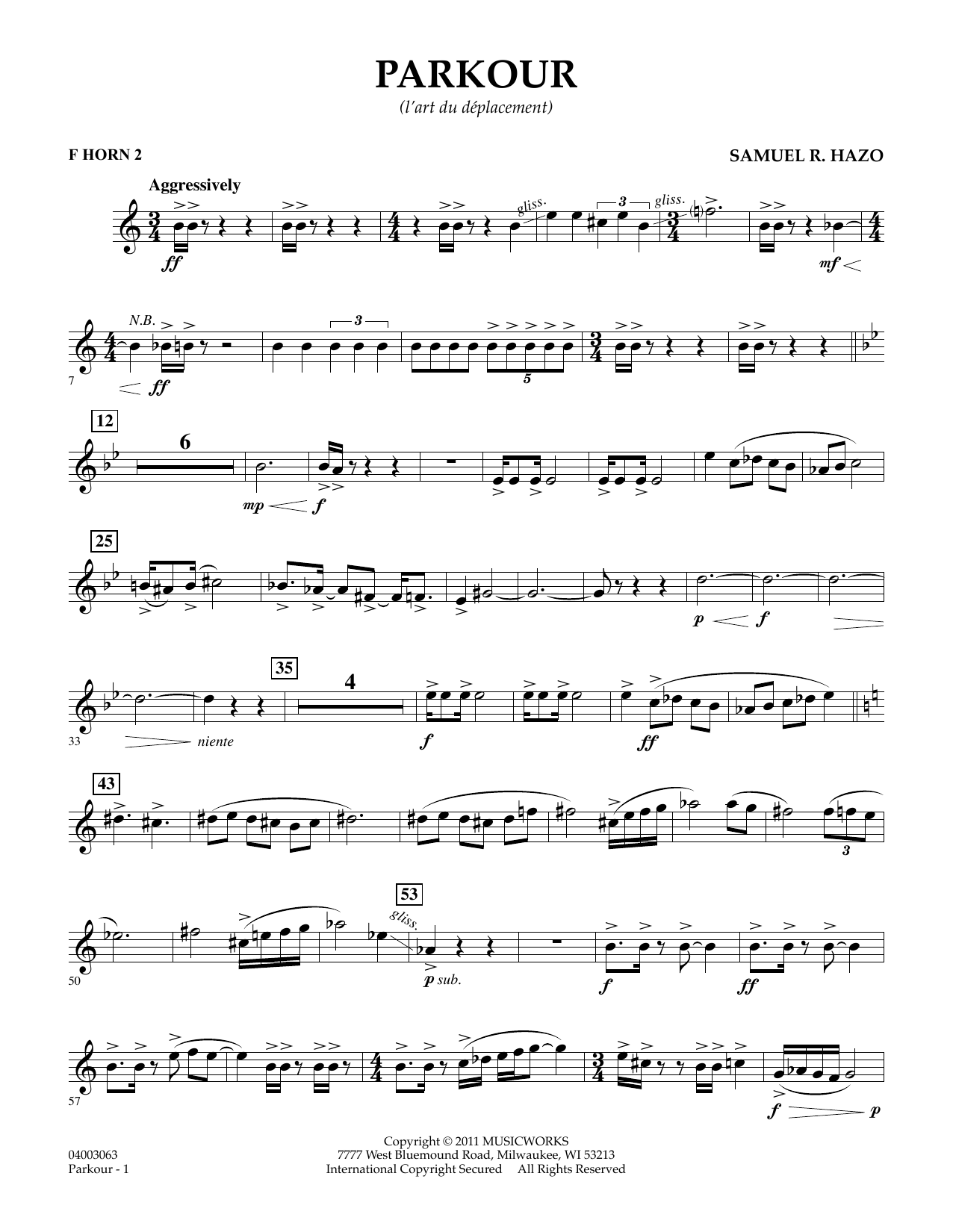 Combining brash and aggressive rhythmic figures along with more gentle moments and inventive textures, this impressive work by Samuel Hazo is truly a standout for advanced bands. The piece is built around a four-note motif, which is developed and expanded throughout. A middle section features more of a jazzy flavor with saxes in the spotlight accompanied by finger snaps. The rhythmic intensity returns, building towards a glorious full ensemble affirmation and bringing this exciting work to a powerful conclusion.