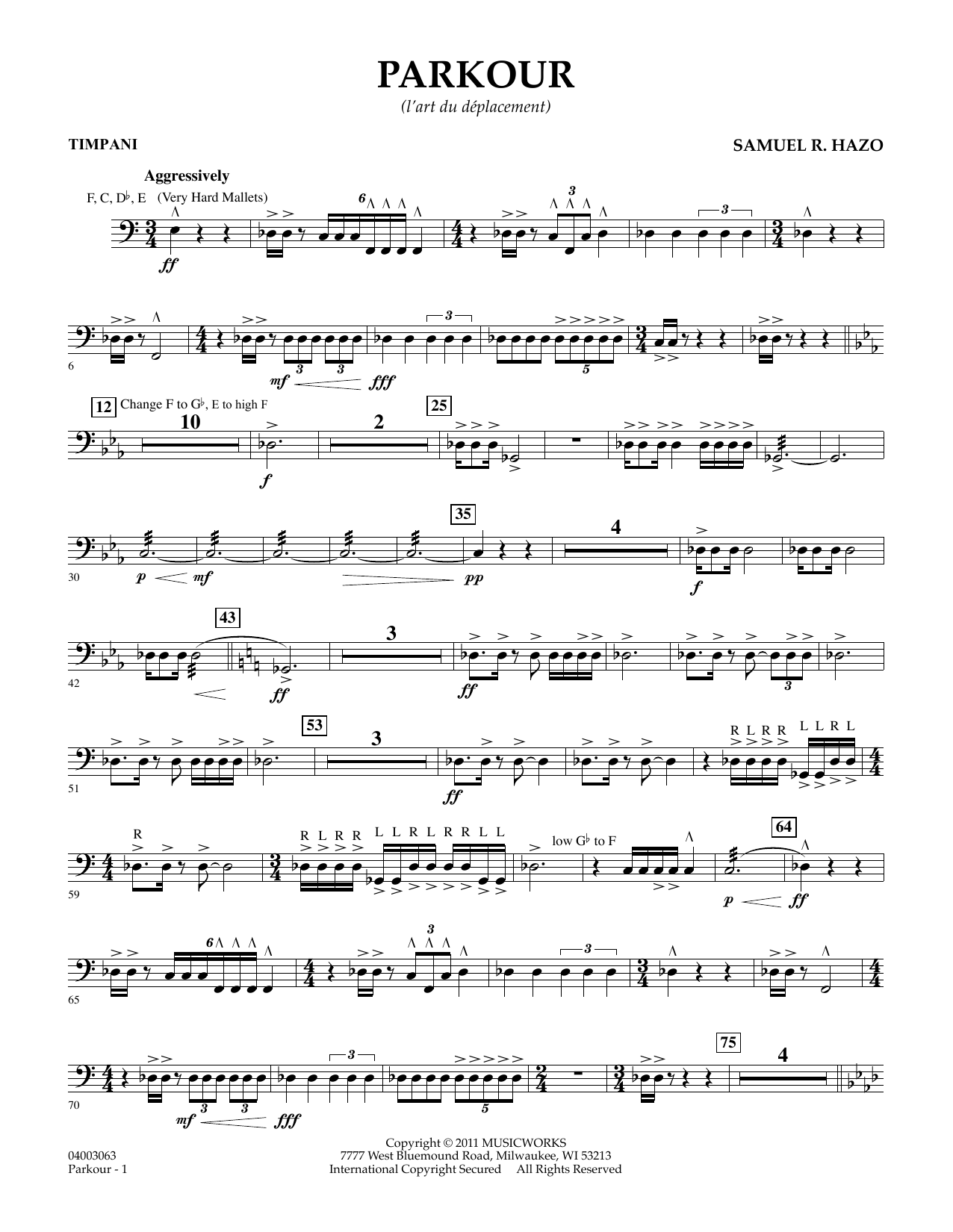 Combining brash and aggressive rhythmic figures along with more gentle moments and inventive textures, this impressive work by Samuel Hazo is truly a standout for advanced bands. The piece is built around a four-note motif, which is developed and expanded throughout. A middle section features more of a jazzy flavor with saxes in the spotlight accompanied by finger snaps. The rhythmic intensity returns, building towards a glorious full ensemble affirmation and bringing this exciting work to a powerful conclusion.