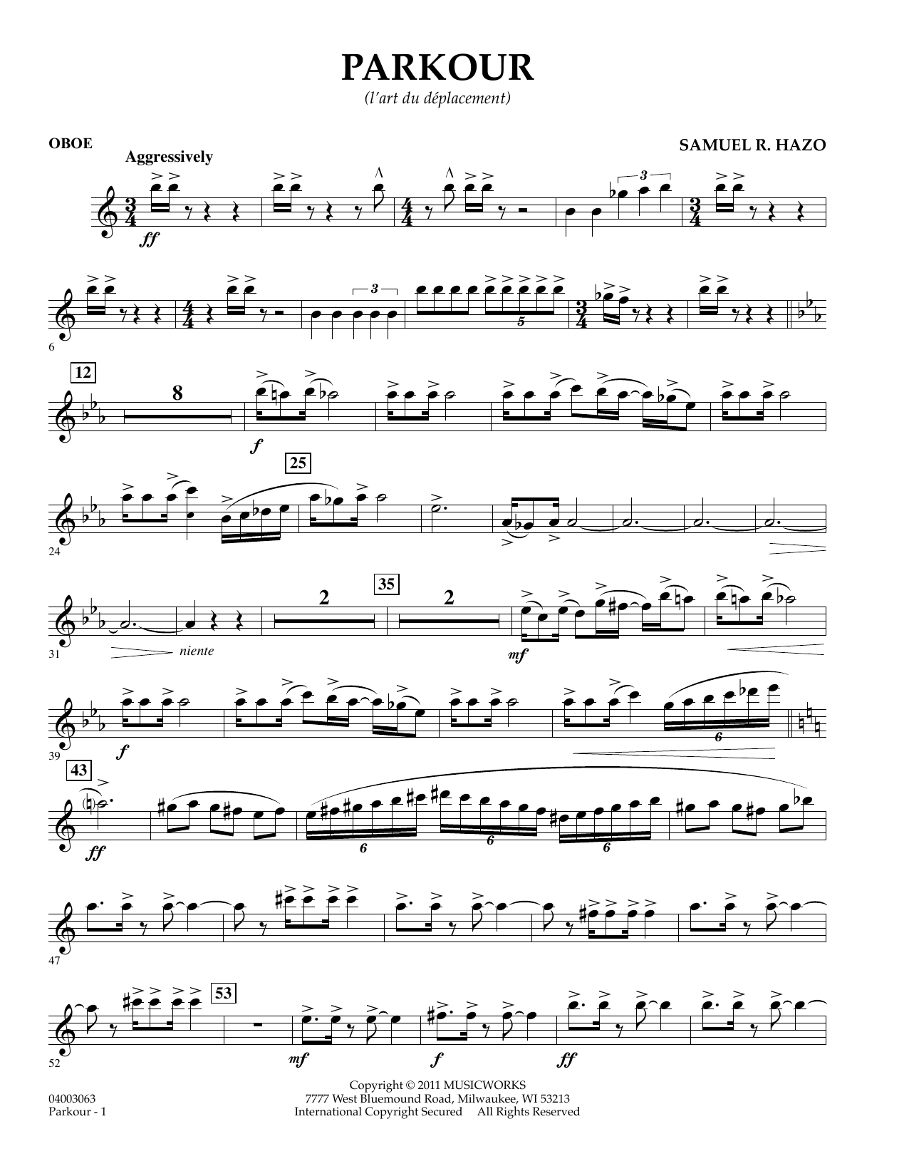 Combining brash and aggressive rhythmic figures along with more gentle moments and inventive textures, this impressive work by Samuel Hazo is truly a standout for advanced bands. The piece is built around a four-note motif, which is developed and expanded throughout. A middle section features more of a jazzy flavor with saxes in the spotlight accompanied by finger snaps. The rhythmic intensity returns, building towards a glorious full ensemble affirmation and bringing this exciting work to a powerful conclusion.