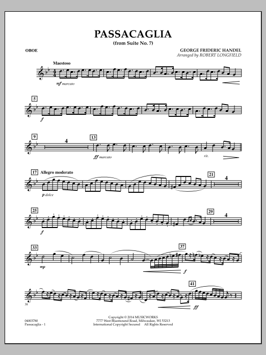 Händels Passacaglia aus der Suite Nr. 7 in g-Moll wurde ursprünglich für Cembalo geschrieben und besteht aus einer Reihe von Variationen über eine sich wiederholende viertaktige harmonische Progression. In dieser meisterhaften Transkription von Robert Longfield dient Händels barockes Kleinod als Vehikel, um die Farben und Klangfarben der modernen Konzertband zu präsentieren. Dauer 4:30