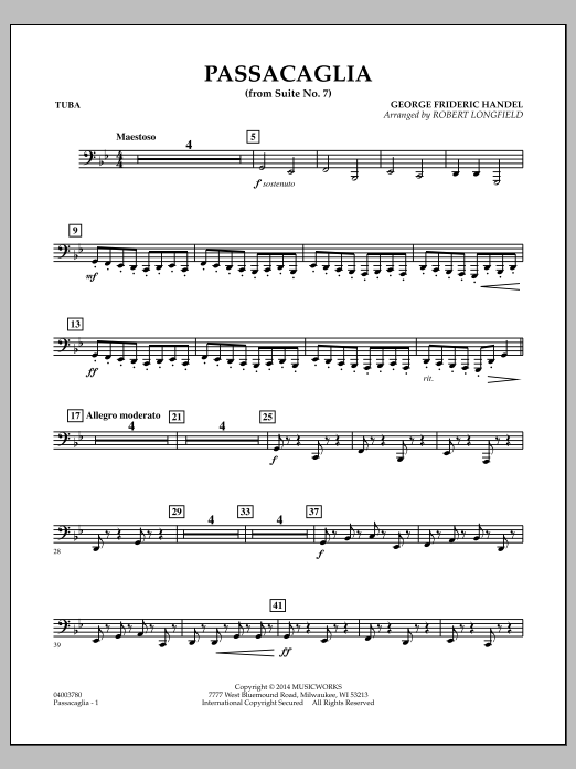 Händels Passacaglia aus der Suite Nr. 7 in g-Moll wurde ursprünglich für Cembalo geschrieben und besteht aus einer Reihe von Variationen über eine sich wiederholende viertaktige harmonische Progression. In dieser meisterhaften Transkription von Robert Longfield dient Händels barockes Kleinod als Vehikel, um die Farben und Klangfarben der modernen Konzertband zu präsentieren. Dauer 4:30