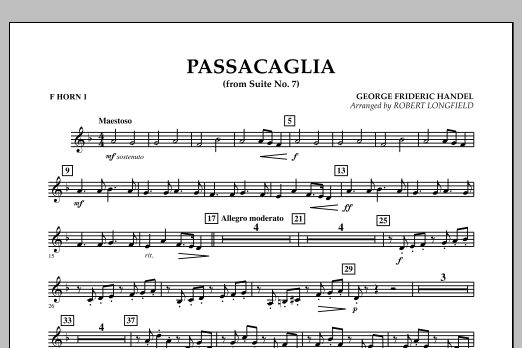 Händels Passacaglia aus der Suite Nr. 7 in g-Moll wurde ursprünglich für Cembalo geschrieben und besteht aus einer Reihe von Variationen über eine sich wiederholende viertaktige harmonische Progression. In dieser meisterhaften Transkription von Robert Longfield dient Händels barockes Kleinod als Vehikel, um die Farben und Klangfarben der modernen Konzertband zu präsentieren. Dauer 4:30