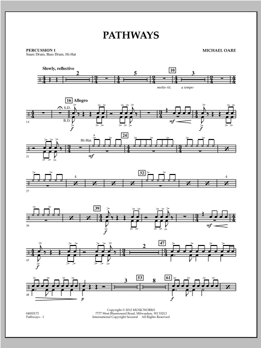 Commissioned by the Grassfield High School Band in Chesapeake, Virginia, and dedicated to the graduating class of 2011, the title and nature of this work reference the various pathways chosen, and those yet to be taken, in all of our lives. Michael Oare's rich and expressive composition uses a nice blend of tempos and styles to create a dynamic, well-scored overture for young players. Dur: 4:00