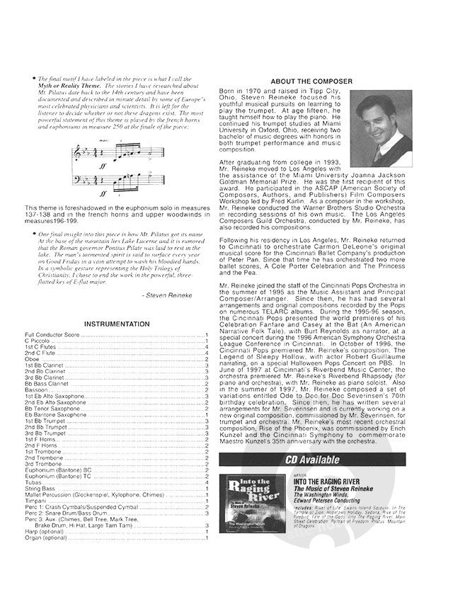 Auf eindrückliche Art gelingt es Steven Reineke, den programmatischen Hintergrund dieses Werks in Musik umzusetzen. Die Kompositon ist abwechslungsreich, ausgezeichnet (teilweise recht transparent) instrumentiert. Der Einsatz der Harfe sowie der Orgel (beide optional) vermögen natürlich die Wirkung dieses dramatischen Werks zusätzlich noch zu steigern.